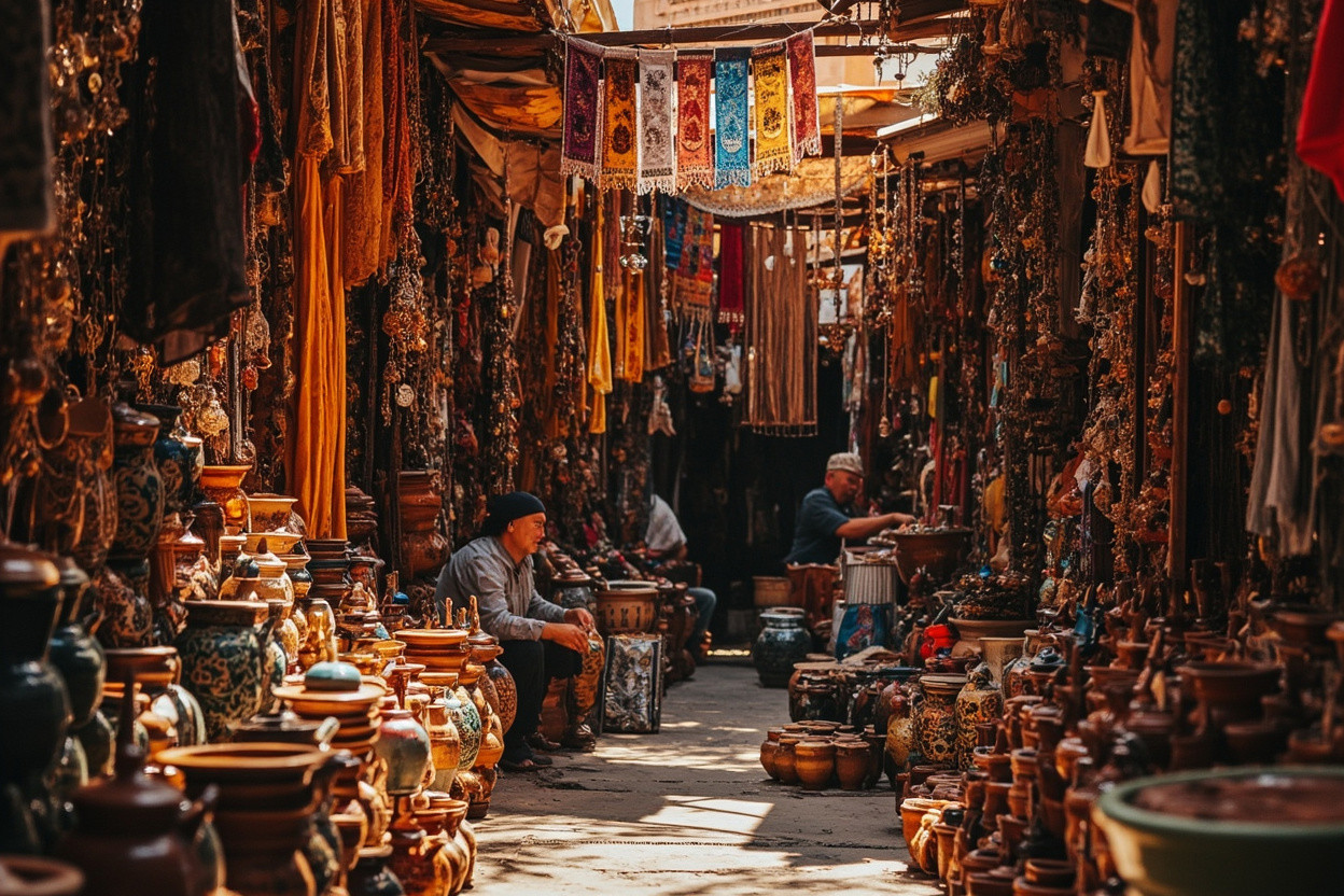 Марокко славится своими яркими рынками, где можно найти красочные ткани, ручную керамику и ювелирные изделия.