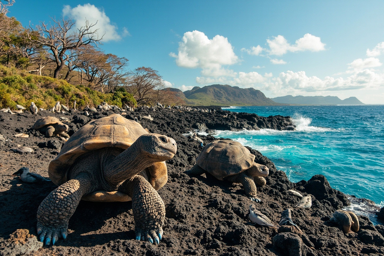 Галапагосские острова расположены в Тихом океане и известны своим биоразнообразием. Это место вдохновило Чарльза Дарвина на создание теории эволюции.