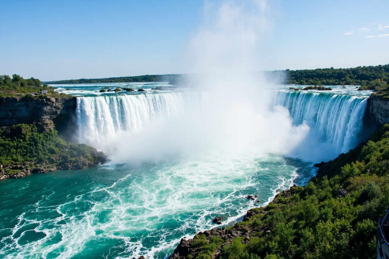 Ниагарский водопад, расположенный на границе США и Канады, известен своей мощью и величественным видом. Он состоит из трех водопадов: Американского, Британского и Хорсшоу. Ежегодно водопад привлекает миллионы туристов.
